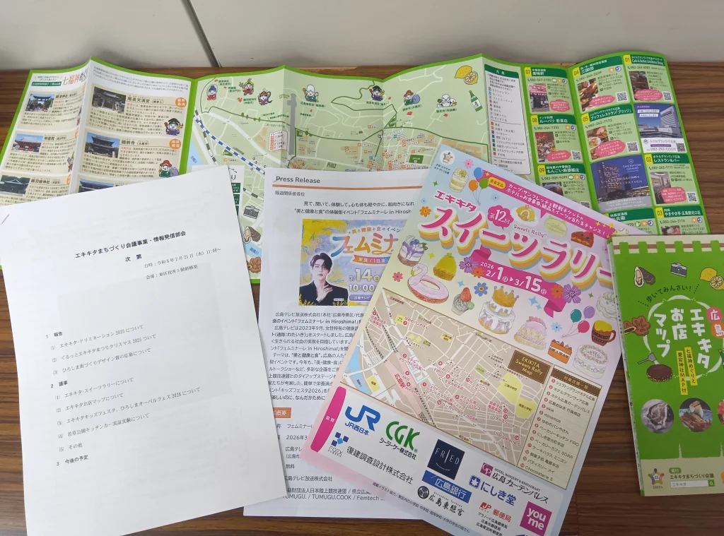 7年ぶりに完成したエキキタお店マップは、会員の皆様に好評で、3月2日から広島銀行北口支店のロビーにてお披露目掲載することを決定しました。いろんな場所で目に触れる機会がありますので、ぜひ、手にとってご覧ください。このほか、キッチンカーの実証実験や「ひろしま街づくりデザイン賞」への応募など、エキキタの活動を色んな方にPRしていく方法などについて議論しました。今後もエキキタまちづくり会議の活動にご注目ください。