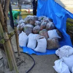 突如始まった側溝の清掃。たぶん公園開設以来初めての清掃かもしれません。完全に水路の機能を失うほど土砂や枯葉で埋もれていました。一人二人では気の遠くなる作業も、皆さんのおかげで綺麗になりました。